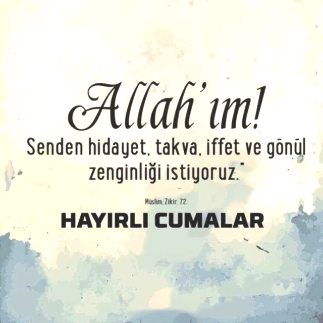 Yüce Allah'ım! Bu günün ve yarının, bildiğim ve bilmediğim her türlü güzelliğini senden talep ediyorum. Cenneti ve beni ona yaklaştıracak söz ve amelleri senden istiyorum. Cumanız mübarek olsun.